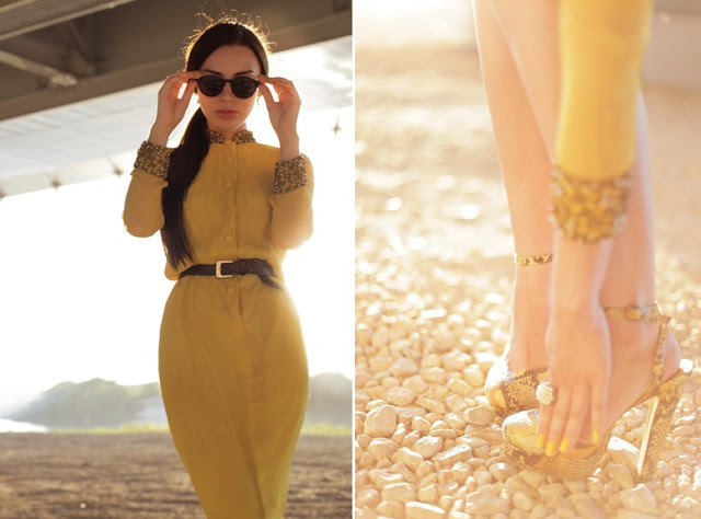В последнее время волей случая скупаю вещи желтого цвета. Вдруг нарисовались 3 желтые пары обуви, с ними платье, потом брюки, рубашка, купальник и даже джинсы. Все желтое, хотя не могу назвать себя большим поклонником этого цвета. Так уж случилось, что это цвет моего лета. В этот раз получился настоящий total yellow с помощью платья из жатого шелка и босоножек из рептилии, моих итальянских найденышей. А какой цвет вашего лета?