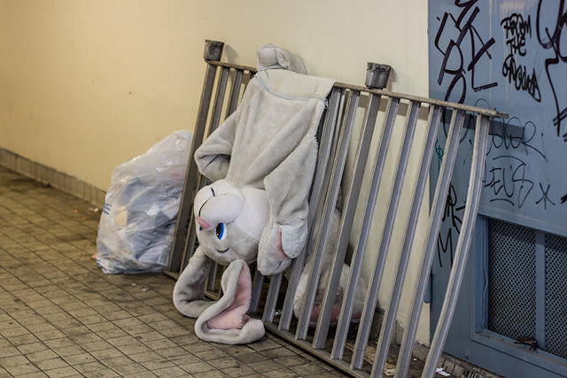 Кто-то оставил в переходе свой рабочий костюм)))) В том же переходе лежал двухспальный матрац, на котором укутались в одеяло маленькая девочка и две молодые женщины. Они пугливо, но очень искренне улыбнулись моим 2 евро в железную банку. Впервые за границей вижу бездомных с детьми. Когда мы прошли немного дальше я увидела темнокожего мужчину, сидящего на асфальте в позе лотоса с маленьким мальчиком на коленях. Они напомнили мне фильм с Уилом Смитом "В погоне за счастьем". Тяжелая картина. И та и другая.