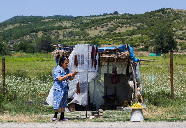 У этой чудесной бабушки мы купили по дороге чурчхелы, а вот так она готовится: