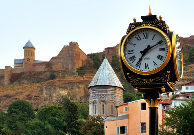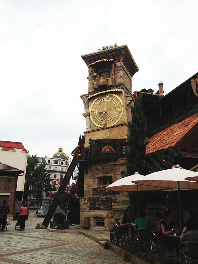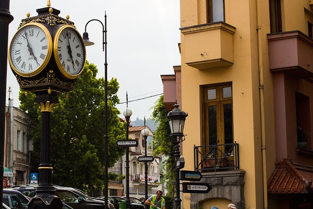 Конечно же это улица Шардени. Такси всегда подвозит к месту с часами. Кстати, по городу удобнее всего передвигаться на такси. Они катаются везде, в любое время суток и стоит такое "удовольствие" совсем копейки в сравнении с нашей Белокаменной. Для меня Шардени - это закрытое пространство, хоть и улица. Там безумно красиво. Днем там тихо и гуляют туристы, а вечером очень шумно и местные жители сидят по кафешкам. Нет ничего прекрасней, чем летним вечером, когда воздух стал наконец более или менее свежим забраться на верхние этажы на Шардени с видом на Нарикалу, подсвеченную ночными фонарями. Заказать вина, слушать, как внизу "живет" город, а над головой летают канатки с туристами.