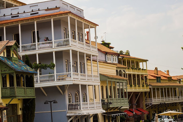 Красивые балкончики в Абанотубани - квартал в центре с банями, стоящими на естественных серных источниках. Эти кирпичные купола и есть бани. Кстати, история говорит о том, что название города пошло именно отсюда, из-за того, что город построен на теплых источниках.