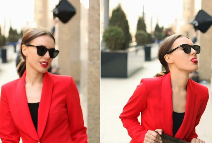 Доброе утро! Давно искала повод надеть свой красный костюм и наконец-то нашла. Меня часто, кстати, спрашивают "что надеть на день рождения или свадьбу, если не платье?". Мой вариант яркий брючный костюм. Хотела рискнуть и надеть пиджак на голое тело. Очень мне нравится как это выглядит в журналах, но в жизни все оказалась не так просто и красиво. Вроде бы и вырез позволял, но очень оказалось не уютно по ощущениям. Возможно, я недостаточно смелая для этого, а может лучше испробовать этот прием на костюме более нейтрального цвета.