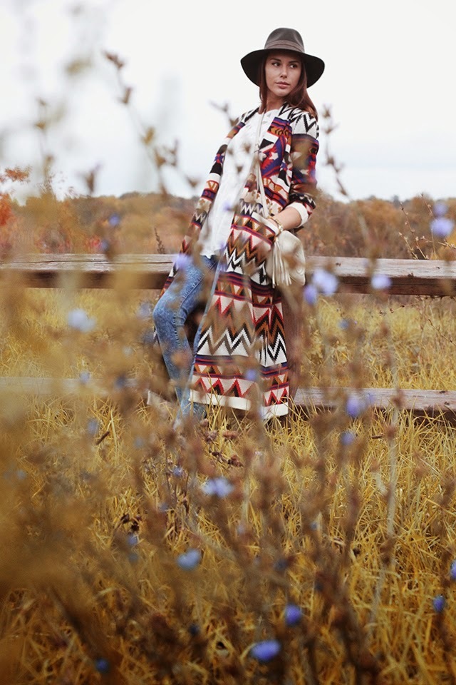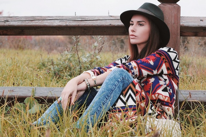 Я для себя выбрала outfit из коллекции в стиле boho, который, на мой взгляд, очень подходит к красочной осени. Длинный кардиган стоимостью 2499р, скинни джинсы 999р, блузка 1299р и шляпа всего 749р. Ботинки я купила в Нью-Йорке (около 30$) , в магазине в Москве, к сожалению, они не представлены. В общем, наряд получился на сумму меньше 7 000р.
