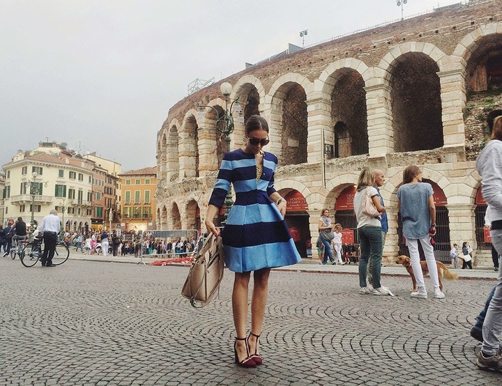 Собираясь в эту поездку, я решила взять вместо чемодана маленькую сумку, которую одолжила у Макса. Я подумала, что еду всего на сутки и возьму с собой по минимуму. Сумка маленькая, я легко несла ее на плече и планировала взять с собой в самолет. Но...каким-то мистическим образом, на вопрос "будете сдавать багаж?"...я ответила ДА. И конечно же в Верону, вместе со мной, он не прилетел. Браво, Рита! Я уже была в Арена ди Верона прошлым летом и прекрасно понимала, что не могу пойти в своих серых спортивных штанах, толстовке и кроссовках на шоу, где будет красная ковровая дорожка, звезды шоу-бизнеса, модели и, в конце концов, нарядные "коллеги" журналисты. Поэтому, пожертвовав обедом, я поехала в город искать себе новый наряд.